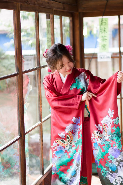 振り袖は、若い女性が着る、最も、フォーマルな着物です。袖が長くて、とても豪華です。